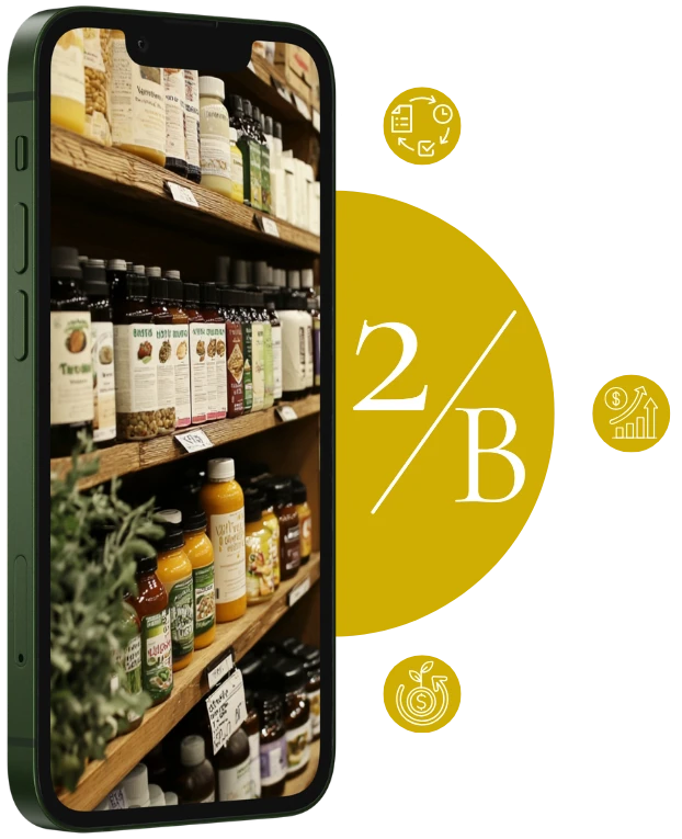 A mentoria 2B é um verdadeiro MBA do mercado de saudáveis. O programa conta com um acompanhamento de 12 meses com 24 aulas ao vivo e online com nossos especialistas Barty Lamanna e Bruno Moreti. São mais de 48 horas de conteúdo prático focado em aumentar o faturamento e a lucratividade de sua loja de produtos naturais.